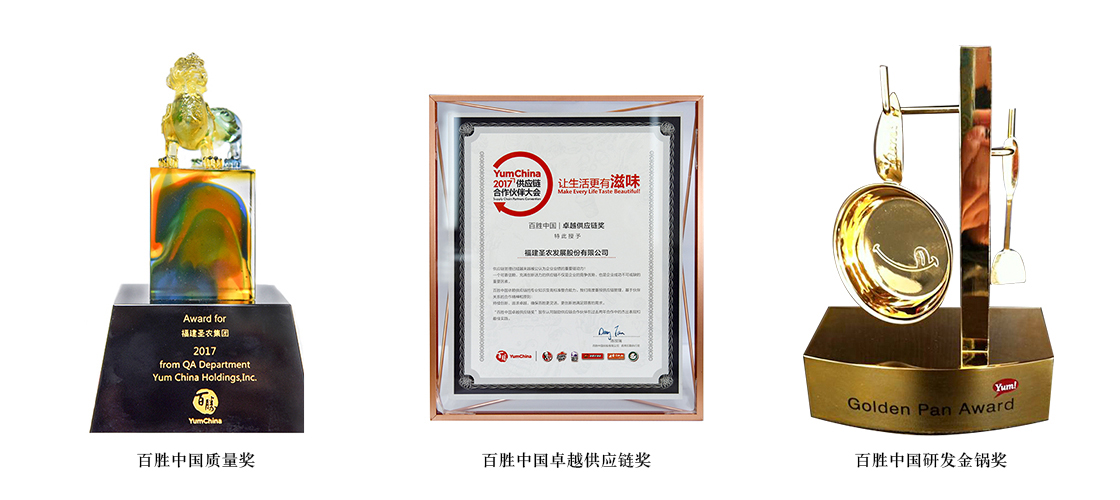 由于圣農(nóng)集團(tuán)在雞肉類新品開發(fā)中表現(xiàn)的優(yōu)異成績和專業(yè)精神,百勝中國特授予“百勝中國研發(fā)金鍋獎”。