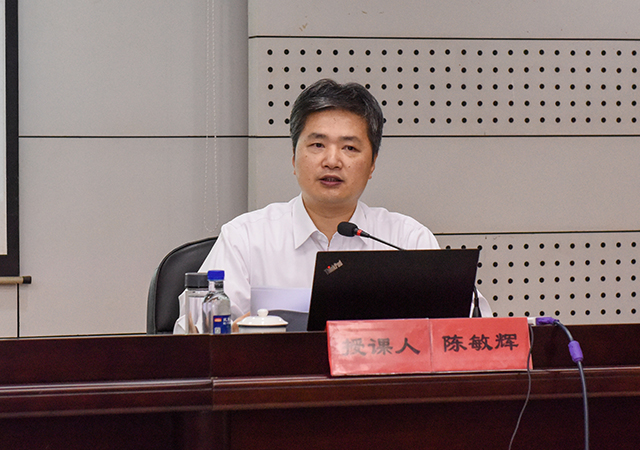 陳敏輝書記從“習(xí)近平新時代中國特色社會主義思想的科學(xué)理論體系”、“強(qiáng)化政治擔(dān)當(dāng),把黨的政治建設(shè)擺在首位”和“突出政治功能,努力提升組織能力”等三個方面,深刻透徹闡釋了習(xí)近平新時代中國特色社會主義思想。