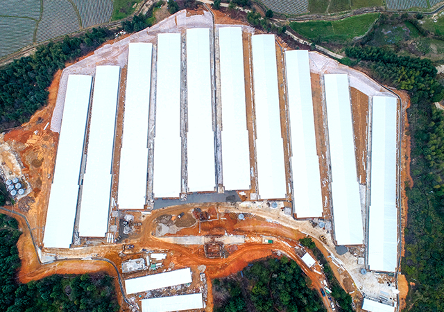 不僅在光澤基地,集團旗下的浦城基地、政和基地的產(chǎn)業(yè)化擴建工程也在如火如荼進行中。浦城基地肉雞產(chǎn)業(yè)化擴建工程被列為福建省重點建設項目,投資4.4億元,新建食品7廠、食品8廠、種雞場片區(qū)、飼料廠一期擴建工程、宿舍樓。在施工現(xiàn)場,我們看到食品7廠、飼料廠一期擴建工程順利封頂,正在安裝設備。種雞場片區(qū)10棟雞舍中的4棟、宿舍樓已經(jīng)封頂,食品8廠完成預制管施工。