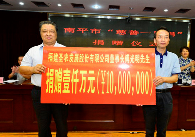 從最初的捐建“光澤縣希望小學(xué)”,到救災(zāi),再到汶川、玉樹(shù)地震捐款,可以說(shuō)每當(dāng)社會(huì)有災(zāi)難和不幸的事情發(fā)生,每當(dāng)有弱勢(shì)群體需要救助的時(shí)候,他都會(huì)義無(wú)反顧地慷慨解囊,向善而行的執(zhí)著匯集成溫暖社會(huì)的大愛(ài),凝聚成許許多多弱勢(shì)群體實(shí)現(xiàn)夢(mèng)想的力量。 20多年來(lái),他累計(jì)向慈善事業(yè)捐贈(zèng)超過(guò)17億元,成為南平市捐贈(zèng)金額最多的企業(yè)家,被南平市委、市政府授予“慈善家”稱(chēng)號(hào)。 慈心濟(jì)貧拔苦,德高者行自遠(yuǎn)。他是中國(guó)白羽肉雞行業(yè)企業(yè)家社會(huì)參與意識(shí)和貢獻(xiàn)的珠峰,至今為止,鮮有人可以望其項(xiàng)背。 “作為一名共產(chǎn)黨員企業(yè)家,不單要辦好企業(yè) ,也要在履行社會(huì)責(zé)任的方方面面都走在前列。沒(méi)有全力去回報(bào)社會(huì)的黨員談對(duì)黨忠誠(chéng),是空話”。 2004年,集團(tuán)工農(nóng)業(yè)總產(chǎn)值首次突破10億元,此時(shí),不少人勸傅光明董事長(zhǎng)把總部遷移到大城市。