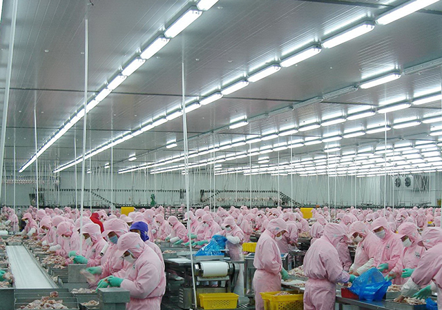 分割好的產(chǎn)品由品控人員抽檢合格后,進(jìn)行真空包裝。包裝好的產(chǎn)品必須通過(guò)金屬探測(cè)器的檢測(cè),然后放入-40℃的速凍庫(kù)速凍,以確保雞肉新鮮度,速凍后再轉(zhuǎn)入-18℃的冷藏庫(kù)冷藏。